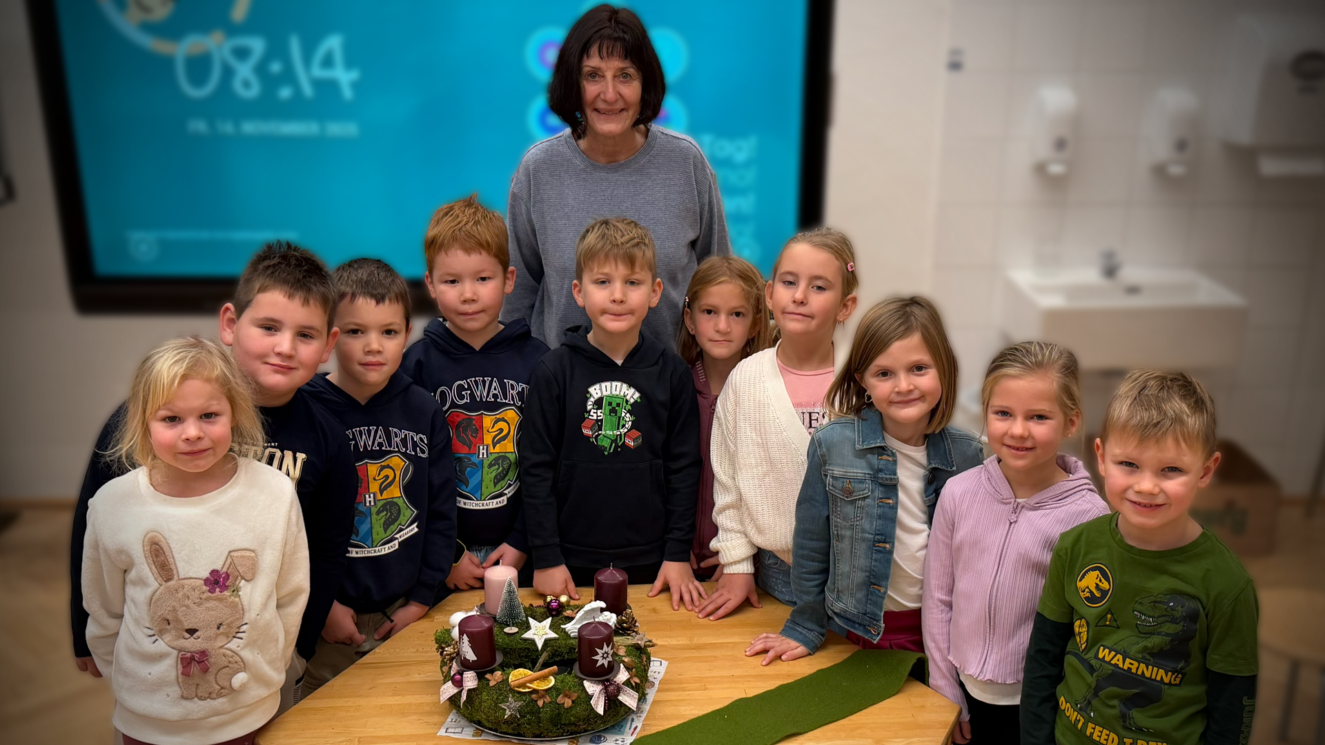 Am Sonntag beginnt die Adventzeit und die 1a freut sich gemeinsam mit ihrer Religionslehrerin Lidija Kapp-Bošič – so wie alle Kinder unserer Schule – schon auf diese besinnliche Zeit. In unserer Schule wird täglich gesungen und wir legen großen Wert auf ein friedliches Miteinander.