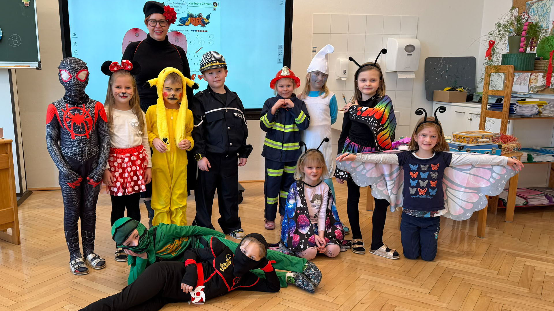 Unsere Kinder und Lehrerinnen kamen heute mit ihren tollen Faschingskostümen zur Schule. Die Pause wurde mit köstlichen Krapfen der heimischen Bäckerei Haimburger versüßt.