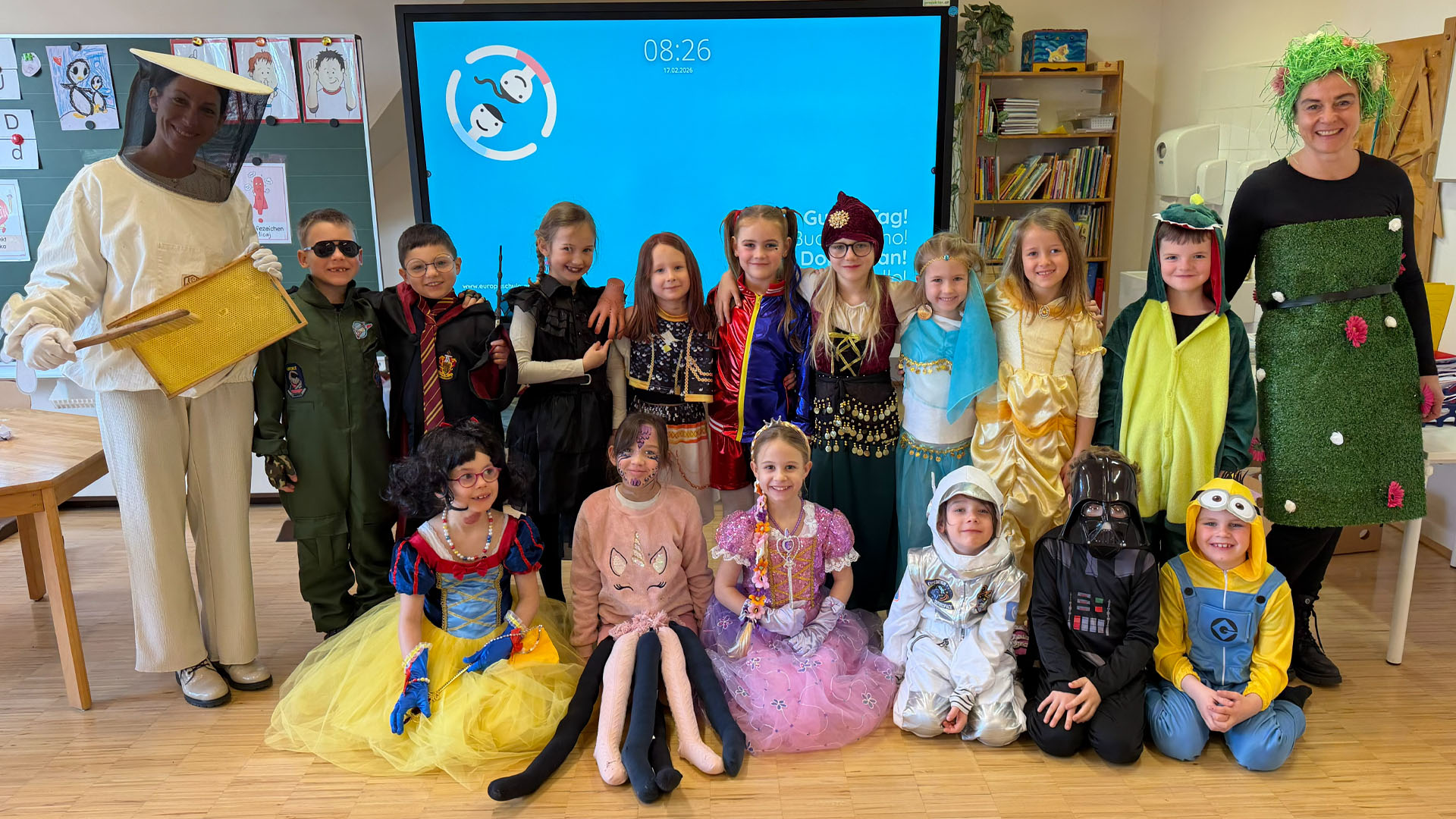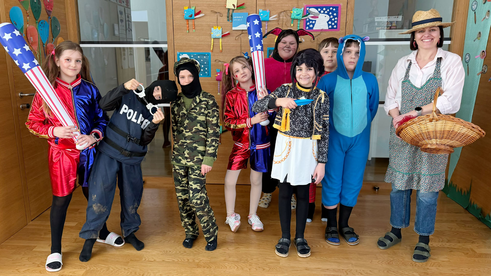 Naši otroci in učiteljice so danes prišli v šolo v čudovitih pustnih kostumih. Odmor so nam polepšali okusni krofi domače pekarne Haimburger.